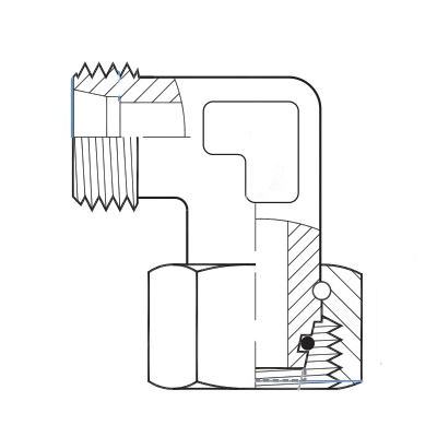 Adaptall Light-Duty 90 deg Elbow, Series: 5360L, Connection Type 1: Metric DIN Tube, Gender 1: Male, Connection Size 1: 35 mm, Thread Size 1: M45 x 2, Connection Type 2: Metric DIN Tube Swivel, Gender 2: Female, Connection Size 2: 35 mm, Thread Size 2: M45 x 2, Hex Size: 50 mm, Dimension Standards: DIN 2353, ISO 8434-1, Material Construction: Carbon Steel