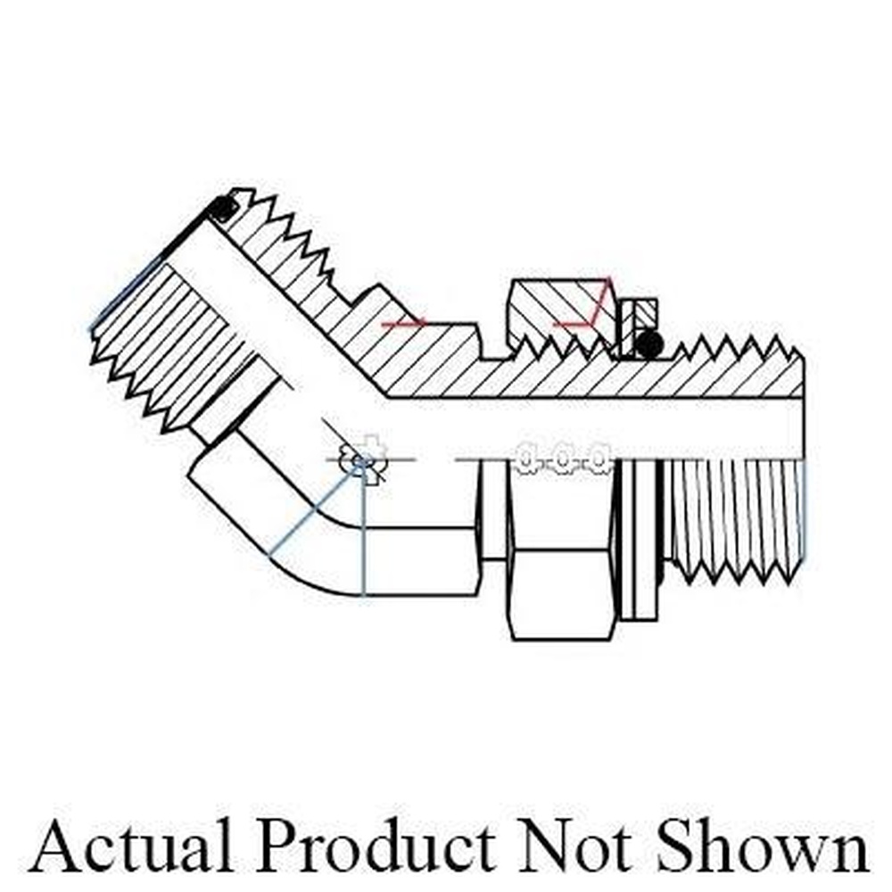 adapt-all Adjustable 45 deg Elbow, Series: 6058 Series, 45 deg Elbow Fitting, 3/4 in Connection Size 1, Male ORFS Connection Type 1, 3/4 in Connection Size 2, Male BSPP Connection Type 2, Male ORFS|Male BSP Connection Type, Steel, Carbon Steel Material Construction, 1-3/16-12 x G3/4-14 Thread, SAE J1453 Dimension Standards