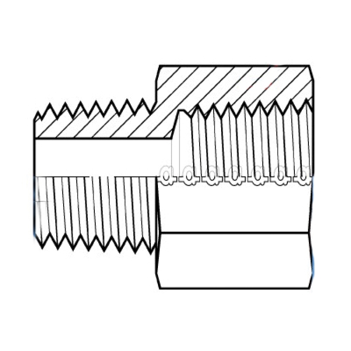 Adaptall Straight Adapter, Series: 9042, Connection Type 1: BSPT, Gender 1: Male, Connection Size 1: 1/4 in, Thread Size 1: R 1/4-19, Connection Type 2: NPTF, Gender 2: Female, Connection Size 2: 1/4 in, Thread Size 2: 1/4-18, Hex Size: 19 mm, Dimension Standards: ANSI B1.20.3, DIN EN 10226-1, ISO 7-1, Material Construction: Carbon Steel, 37.3 mm Length