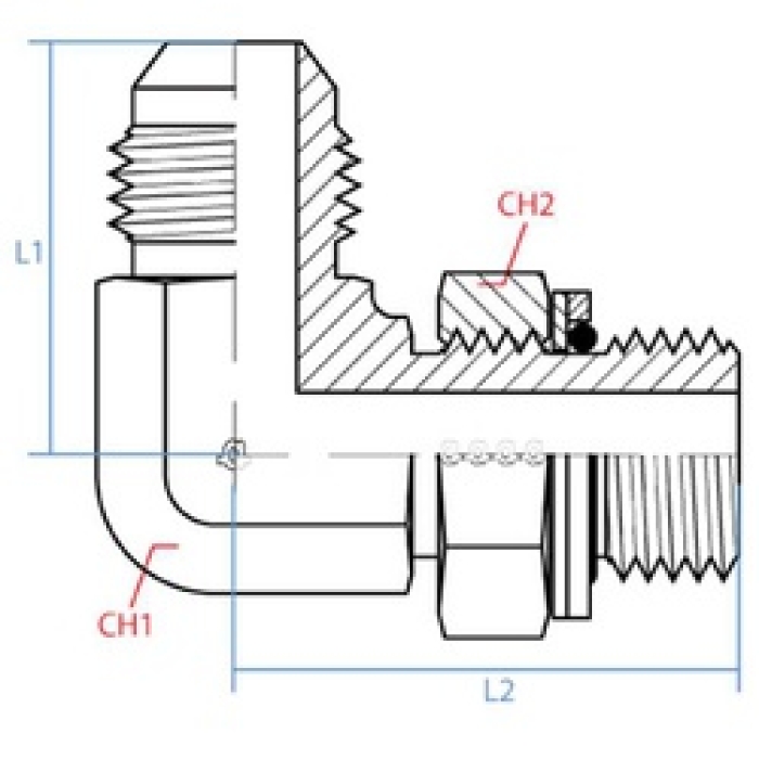 Adaptall 90 deg Adjustable Elbow, Series: 9059 Series, 90 deg Elbow Fitting, 1/4 in Connection Size 1, Male JIC Connection Type 1, 3/8 in Connection Size 2, Male BSPP Connection Type 2, Male JIC|Male BSP Connection, Carbon Steel, Steel Material Construction, 7/16-20 x G3/8-19 Thread, 19 mm, 22 mm Hex, SAE J514, BS 5200 Dimension Standards