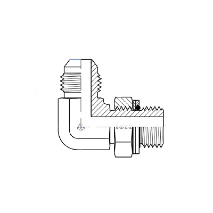 Adaptall 90 deg Adjustable Elbow, Series: 9069, Connection Type 1: Metric, Gender 1: Male, Connection Size 1: 33 mm, Thread Size 1: M33 x 2, Connection Type 2: JIC, Gender 2: Male, Connection Size 2: 1 in, Thread Size 2: 1-5/16-12 UN, Hex Size: 33 x 41 mm, Dimension Standards: SAE J514, ISO 8434-2, ISO 9974, ISO 6149, DIN 7631, Material Construction: Carbon Steel