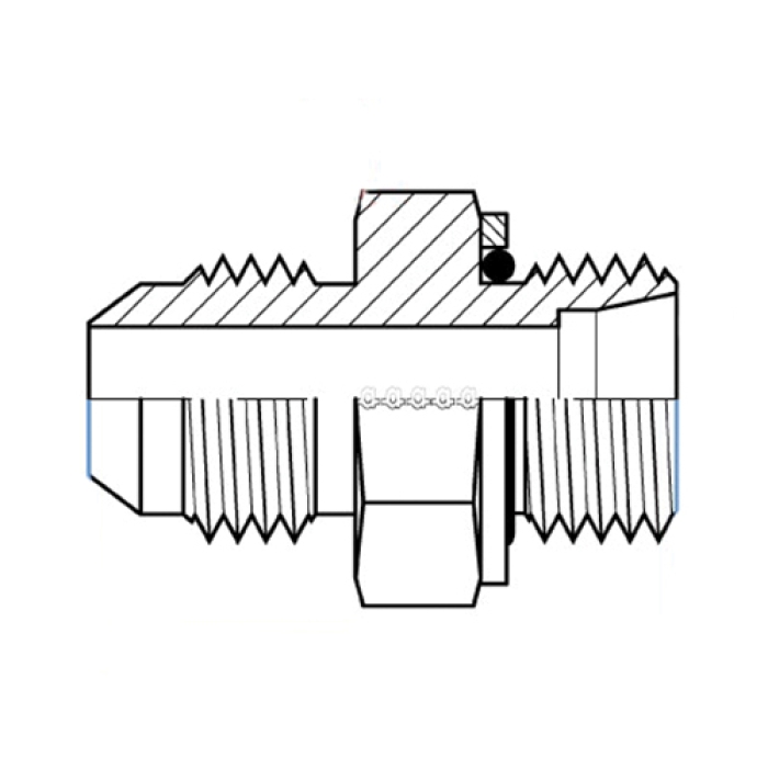 Adaptall Extra Light-Duty Straight Adapter with Washer and O-ring, Series: 9605S, Connection Type 1: Metric DIN Tube, Gender 1: Male, Connection Size 1: 8 mm, Thread Size 1: M12 x 1, Connection Type 2: JIC, Gender 2: Male, Connection Size 2: 1/4 in, Thread Size 2: 7/16-20 UNF, Hex Size: 17 mm, Dimension Standards: DIN 2353, ISO 8434-2, ISO 8434-1, SAE J514, Material Construction: Carbon Steel, 32-1/2 mm Length
