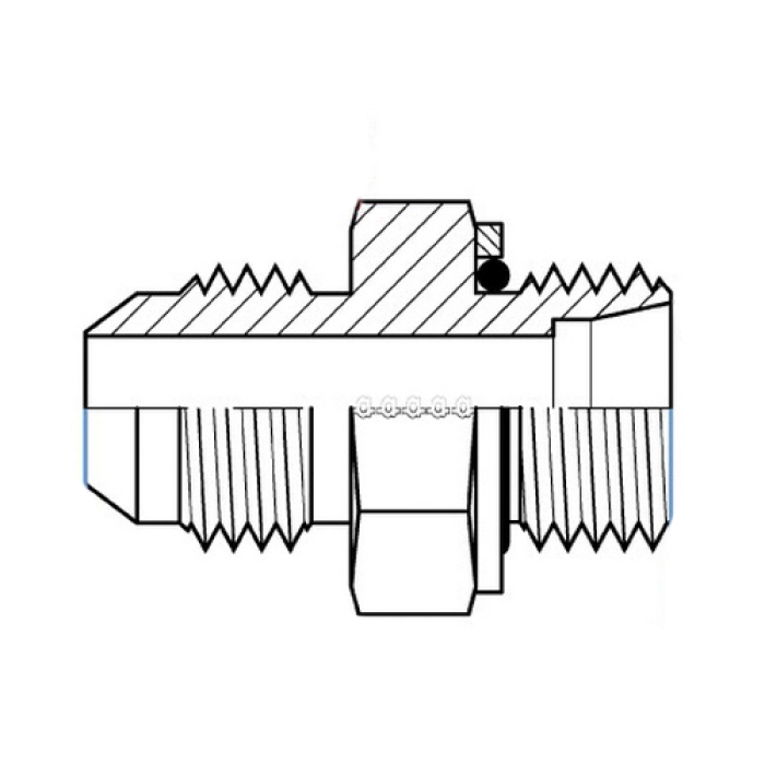 Adaptall Light-Duty Straight Adapter with Washer and O-ring, Series: 9605S, Connection Type 1: Metric DIN Tube, Gender 1: Male, Connection Size 1: 18 mm, Thread Size 1: M26 x 1.5, Connection Type 2: JIC, Gender 2: Male, Connection Size 2: 5/8 in, Thread Size 2: 7/8-14 UNF, Hex Size: 32 mm, Dimension Standards: DIN 2353, ISO 8434-2, ISO 8434-1, SAE J514, Material Construction: Carbon Steel, 48.2 mm Length