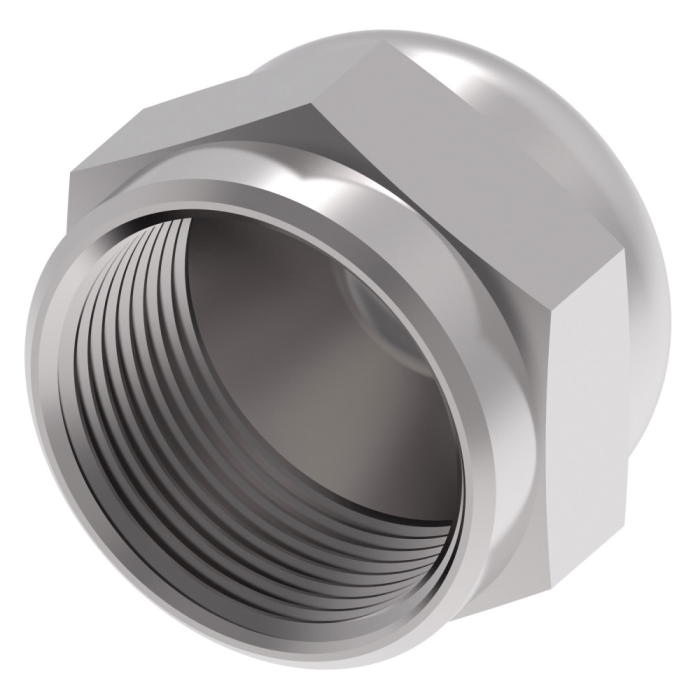Aeroquip® Cap Nut, Series: 210292, Connection Type 1: SAE 37 deg JIC Flare Union, Gender 1: Female, Connection Size 1: 3/8 in, Thread Size 1: 9/16-18, Hex Size: 0.69 in, Dimension Standards: SAE 070112, 4000 psi, Material Construction: Carbon Steel, Finish: Zinc-Plated, 0.62 in Length, 0.6875 in Width, 0.6875 in Height, -40 to 250 deg F