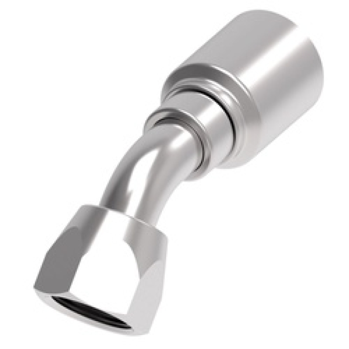 Aeroquip® Crimp Hose 45 deg Elbow, Series: 4T, Fitting Type: 45 deg Elbow, Connection Size 1: 1/2 in, Connection Type 1: Hose, Connection Size 2: 1/2 in, Connection Type 2: Female 37 deg JIC Swivel, Hose Dash Size: 08, Cut-Off Factor: 1.66 in, Material Construction: Carbon Steel, 3/4-16 Thread, 7/8 in Hex, For Use With: Thermoplastic Hoses, 3.19 in L x 1.092 in W x 1.459 in H