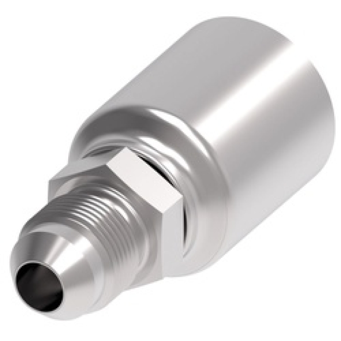 Aeroquip® Rigid Crimp Straight Hose Fitting, Series: 4T, Fitting Type: Hose Fitting, Connection Size 1: 3/8 in, Connection Type 1: Hose, Connection Size 2: 1/2 in, Connection Type 2: Male 37 deg JIC, Connection Type: Hose|Male JIC, Hose Dash Size: 06, Cut-Off Factor: 1.1 in, Steel, Material Construction: Carbon Steel, 3/4-16 Thread, 0.81 in Hex, For Use With: Thermoplastic Hoses, 2.1 in L x 0.962 in W x 0.962 in H