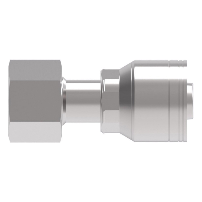 Aeroquip® by Danfoss 4-Spiral Crimp Straight Hose Fitting, Series: 4S, Connection Type 1: Hose, Connection Size 1: 1/2 in, Hose Dash Size: 08, Connection Type 2: ORFS Swivel, Gender 2: Female, Connection Size 2: 5/8 in, Nominal Size: 5/8 in, Thread Size 2: 1-14, Hex Size: 1-1/8 x 7/8 in, Cut-Off Factor: 1.47 in, Material Construction: Carbon Steel, Finish: Dura-Kote, For Use With: EC525-12 to -32, GH493-12 to -32, FC636-12 to -32, FC736-12 to -32, FC500-12 to -24, FC273B-12 and -16, GH506-12 to -32, FC254-12 to -32, EC810-12 and -16, EC600-12 and -16, H430-12 to -32, H430R-12 to -32, EC525-12 to -32, H471-12 to -24, H464-12 to -32, and H485-16 Hoses, Dimensions: 2.64 in L x 1.335 in W x 1.335 in H, Dimension Standards: SAE J1176