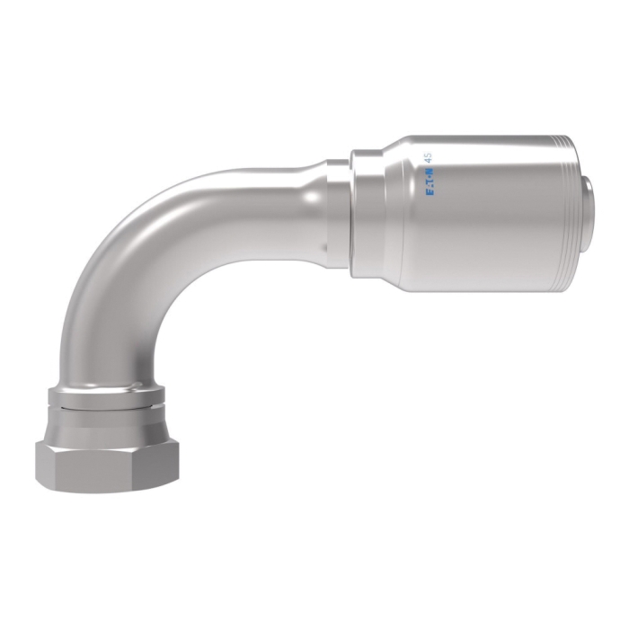 Aeroquip® by Danfoss 4-Spiral Crimp Hose 90 deg Elbow, Series: 4S, Connection Type 1: Hose, Connection Size 1: 1-1/2 in, Hose Dash Size: 24, Connection Type 2: SAE 37 deg JIC Swivel, Gender 2: Female, Connection Size 2: 1-1/2 in, Nominal Size: 1-1/2 in, Thread Size 2: 1-7/8-12, Hex Size: 2-1/4 in, Cut-Off Factor: 5.15 in, Material Construction: Carbon Steel, Finish: Dura-Kote, For Use With: EC525-12 to -32, GH493-12 to -32, FC636-12 to -32, FC736-12 to -32, FC500-12 to -24, FC273B-12 and -16, GH506-12 to -32, FC254-12 to -32, EC810-12 and -16, EC600-12 and -16, H430-12 to -32, H430R-12 to -32, EC525-12 to -32, H471-12 to -24, H464-12 to -32, and H485-16 Hoses, Dimensions: 8.22 in L x 2.823 in W x 6.241 in H, Dimension Standards: SAE J1176