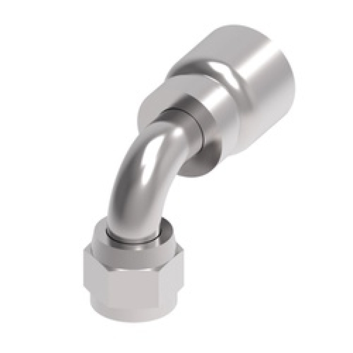 Aeroquip® 100R5 Crimp Hose 90 deg Elbow, Series: FJ3244, Fitting Type: 90 deg Elbow, Connection Size 1: 3/4 in, Connection Type 1: Hose, Connection Size 2: 5/8 in, Connection Type 2: Female SAE 45 deg/37 deg JIC Swivel, Connection Type: Hose|Female JIC Swivel, Hose Dash Size: 12, Cut-Off Factor: 1.71 in, Steel, Material Construction: Carbon Steel, Dura-Kote, 7/8-14 Thread, 1 in Hex, For Use With: 1503, FC234, FC300, FC350 and FC355 Series Hoses, 3.1 in L x 1 in W x 2.18 in H