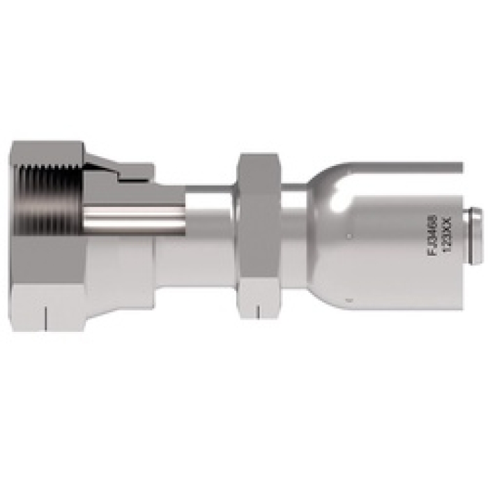 Aeroquip® Straight Crimp Hose Fitting, FJ3468 Series, Hose Fitting Fitting, Connection Type 1: Female ORFS Swivel, Connection Size 2: 0.31 in, Connection Type 2: Hose, Female ORFS Swivel|Hose Connection, #6 Hose Dash Size, 1.36 in Cut-Off Factor, Steel, Carbon Steel Material Construction, Dura-Kote Plated, 13/16-16 Thread, 15/16 in Hex, 2.15 in L, Additional Information: 0.23 in Hole ID