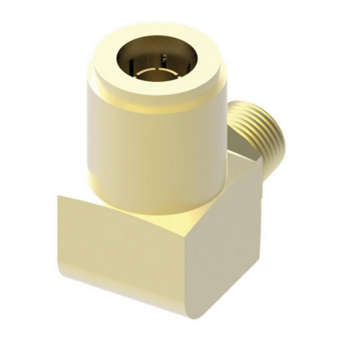 Aeroquip® Quick-Connect Air Brake 90 deg Swivel Elbow, QCAB-1800 Series, 90 deg Elbow Fitting, 1/2 in Connection Size 1, Connection Type 1: Push-to-Connect, 1/2 in Connection Size 2, Connection Type 2: MNPTF, Push-Fit|MNPT Connection, Brass, Material Construction: CA360 Brass, 7/8 in Hex, For Use With: Eaton Air Brake Tubings, 1.65 in L x 0.85 in W x 1.52 in H, 150 psi, -40 to 200 deg F