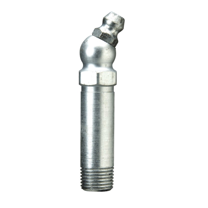 Alemite® Hydraulic 30 deg Grease Fitting, Connection Size 1: 1/8 in, Connection Type 1: PTF, Material Construction: Steel, Finish: Zinc-Plated, 1-1/4 in Length Shank, 3/16 in Length Thread, Hex Size: 7/16 in, Check Valve Type: Ball, 2-3/32 in Length