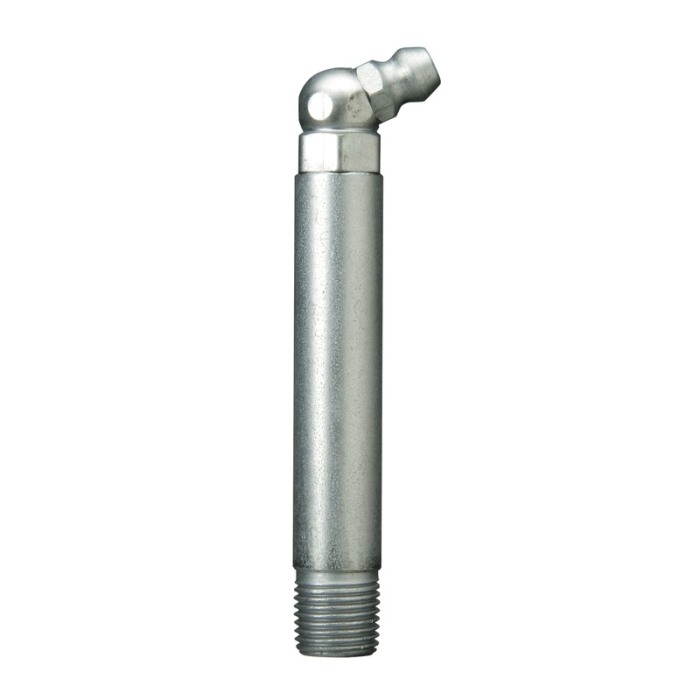 Alemite® Hydraulic 65 deg Grease Fitting, Connection Size 1: 1/8 in, Connection Type 1: PTF, Material Construction: Steel, Finish: Zinc-Plated, 2-1/4 in Length Shank, 3/16 in Length Thread, Hex Size: 3/8 in, Check Valve Type: Ball, 2-3/4 in Length