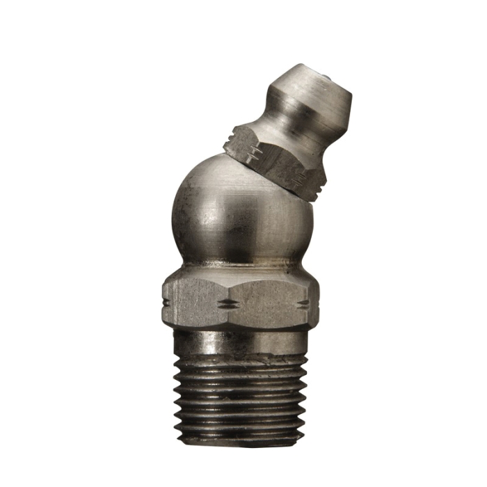 Alemite® Hydraulic 30 deg Grease Fitting, Connection Size 1: 1/8 in, Connection Type 1: PTF, Material Construction: Stainless Steel, 11/32 in Length Shank, Hex Size: 7/16 in, Check Valve Type: Ball, 1-1/4 in Length
