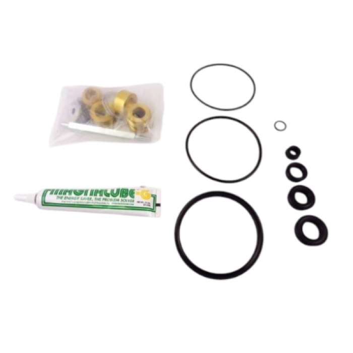 Alemite® Major Repair Kit, For Use With: 9930, 9979, and 9979-M High-Pressure Grease Pumps, Includes: (1) 339513 3/8-24 Flange Nut, (1) 3/8 in ID x 7/8 in OD Washer, (1) X171008-37 2-5/8 in ID x 3 in OD Quad-Ring, (1) X171000-7 3/8 in ID x 1/2 in OD O-Ring, (1) X171003-10 2-3/4 in ID x 3 in OD O-Ring, (1) 1/2 in ID x 3/4 in OD Seal, (1) Brass Lantern Ring, (1) 1/2 in ID x 7/8 in OD Seal, (3) Brass Bearing, (4) Aluminum Gasket, (1) X171009-45 2-9/16 in ID x 2-3/4 in OD O-Ring, (3) 171032-6 3/32 in Dia x 5/8 in L Roll Pin, (1) Spring Guide, (1) Spring, (1) Ball, (1) 5/64 in Dia x 1/2 in L Roll Pin, (1) 5/8 in ID x 1 in OD Seal, (1) Stop, (1) 0.282 in ID x 0.532 in OD Seal, (1) Primer Disk, (1) 3/32 in Dia x 3/8 in L Roll Pin and (1) PTFE Grease Tube