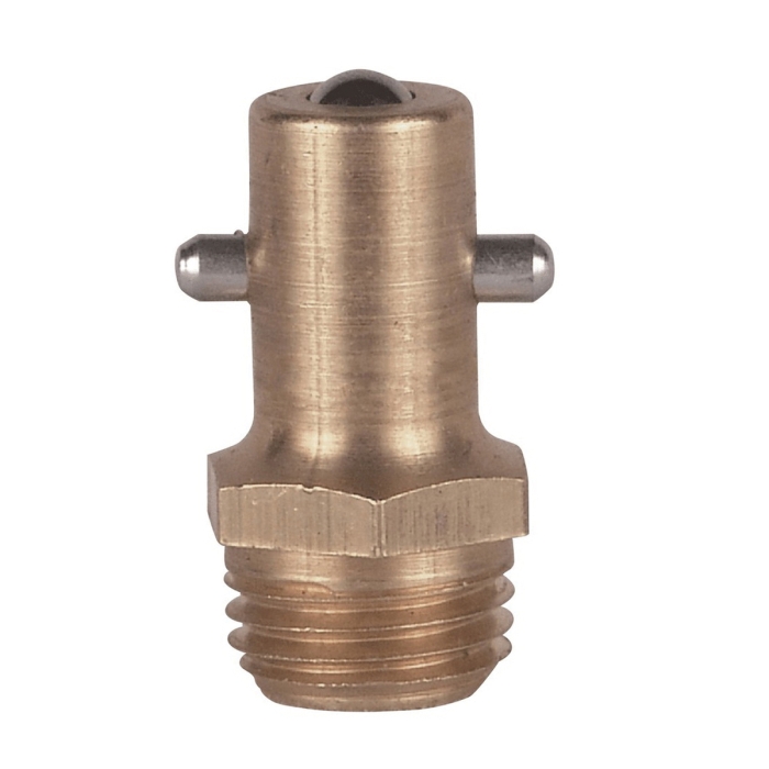 Alemite® Straight Pin Fitting, Connection Size 1: 1/4 in, Connection Type 1: NPTF, Finish: Zinc-Plated, 5/16 in Length Shank, Hex Size: 17/32 in, Check Valve Type: Ball, 1-3/32 in Length
