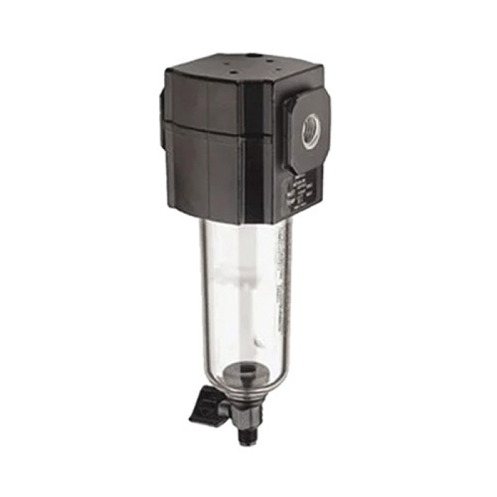 Amflo® Airline Filter, Series: Compact, Inlet Pipe Size: 1/4 in, 21 scfm, 150 psi, Polycarbonate Bowl