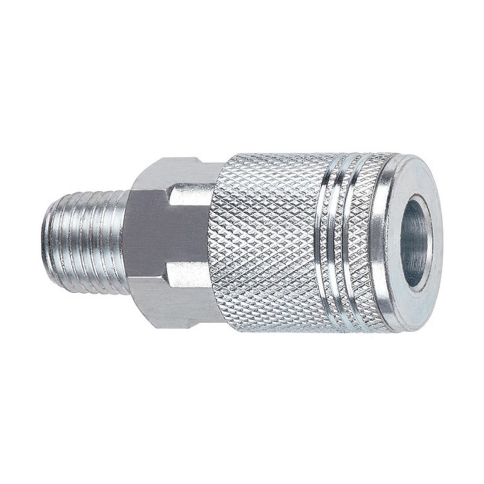 Amflo® Coupler, Series: D Design, Connection Type 1: Quick Connect, Gender 1: Female, Connection Size 1: 1/4 in, Connection Type 2: NPT, Gender 2: Male, Connection Size 2: 1/4 in, 300 psi, Material Construction: Steel, For Use With: Compressed Air Lines