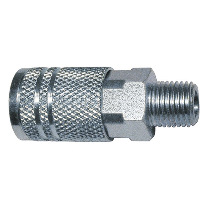 Amflo® Coupler, Series: I/M Design, Connection Type 1: Quick Connect, Connection Size 1: 1/4 in, Connection Type 2: NPT, Gender 2: Male, Connection Size 2: 3/8 in, 300 psi, Material Construction: Steel, For Use With: Compressed Air Lines