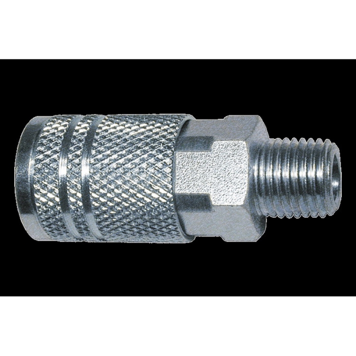 Amflo® Coupler, Series: I/M Design, Connection Type 1: Quick Connect, Connection Size 1: 1/4 in, Connection Type 2: NPT, Gender 2: Male, Connection Size 2: 1/4 in, 300 psi, Material Construction: Steel, For Use With: Compressed Air Lines