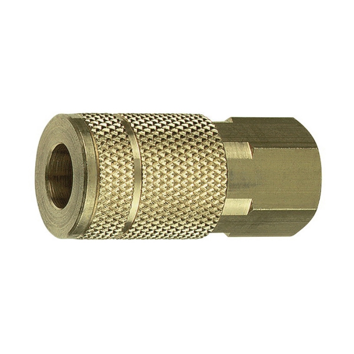 Amflo® Coupler, Series: T Design, Connection Type 1: Quick Connect, Connection Size 1: 1/4 in, Connection Type 2: NPT, Gender 2: Female, Connection Size 2: 1/4 in, 300 psi, Material Construction: Brass, For Use With: Compressed Air Lines