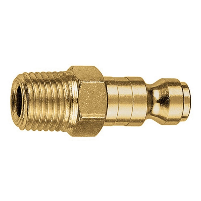Amflo® Plug, Series: T Design, Connection Type 1: Quick Connect, Connection Size 1: 1/4 in, Connection Type 2: NPT, Gender 2: Male, Connection Size 2: 1/4 in, 300 psi, Material Construction: Brass, For Use With: Compressed Air Lines