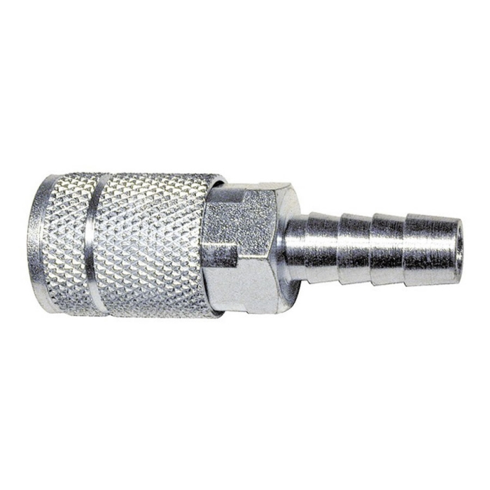 Amflo® Coupler, Series: T Design, Connection Type 1: Quick Connect, Connection Size 1: 1/4 in, Connection Type 2: Hose Barb, Connection Size 2: 3/8 in, 300 psi, Material Construction: Steel, For Use With: Compressed Air Lines
