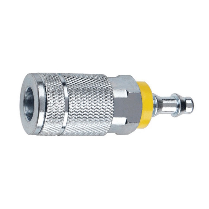 Amflo® Coupler, Series: T Design, Connection Type 1: Quick Connect, Connection Size 1: 1/4 in, Connection Type 2: Lock-on Hose Barb, Connection Size 2: 3/8 in, 300 psi, Material Construction: Steel, For Use With: Compressed Air Lines