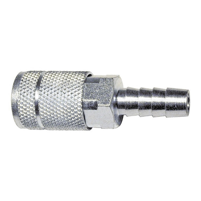 Amflo® Coupler, Series: T Design, Connection Type 1: Quick Connect, Connection Size 1: 3/8 in, Connection Type 2: Hose Barb, Connection Size 2: 3/8 in, 300 psi, Material Construction: Steel, For Use With: Compressed Air Lines