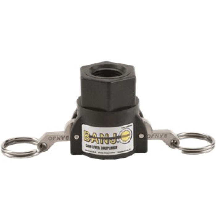 Banjo® Cam Lever Coupling, Connection Type 1: Type D, Gender 1: Female, Connection Size 1: 3/4 in, Connection Type 2: NPT, Gender 2: Female, Connection Size 2: 1/2 in, 300 psi, Material Construction: Glass Filled Polypropylene