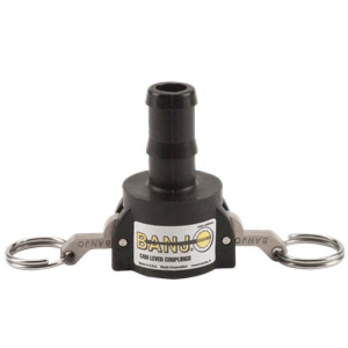 Banjo® Cam Lever Coupling, Connection Type 1: Type C, Gender 1: Female, Connection Size 1: 3/4 in, Connection Type 2: Hose Barb, Connection Size 2: 3/4 in, 300 psi, Material Construction: Polypropylene, Dimensions: 2-15/16 in L