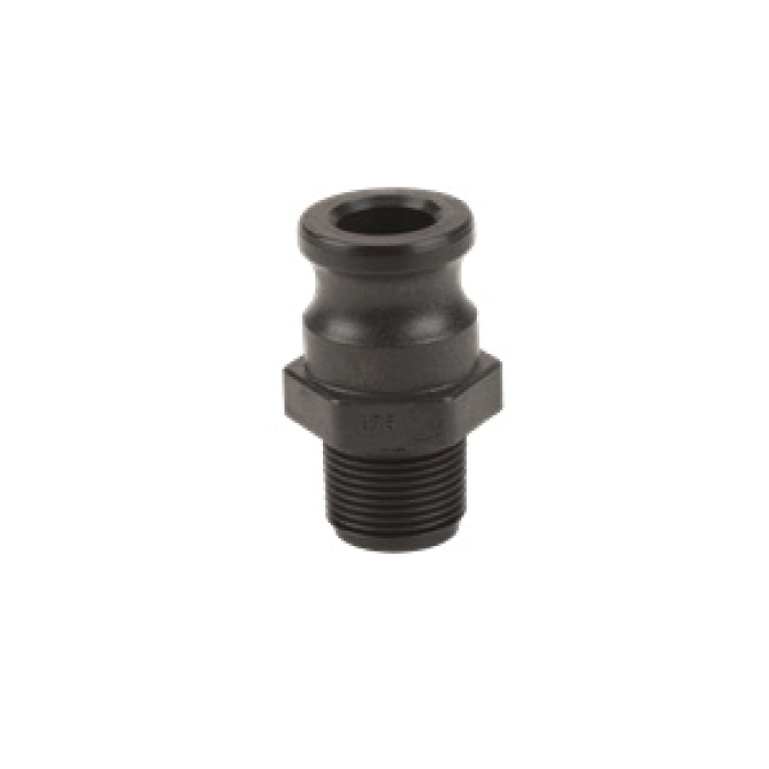 Banjo® Cam Lever Coupling, Connection Type 1: Type F, Gender 1: Male, Connection Size 1: 3/4 in, Connection Type 2: NPT, Gender 2: Male, Connection Size 2: 3/4 in, 300 psi, Material Construction: Glass Filled Polypropylene, Dimensions: 1-1/4 in Dia x 1-1/2 in L