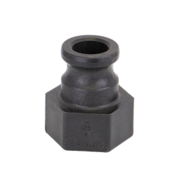 Banjo® Cam Lever Coupling, Connection Type 1: Type A, Gender 1: Male, Connection Size 1: 1 in, Connection Type 2: NPT, Gender 2: Female, Connection Size 2: 1-1/4 in, 300 psi, Material Construction: Polypropylene, Dimensions: 1-7/16 in Dia x 2-7/16 in L