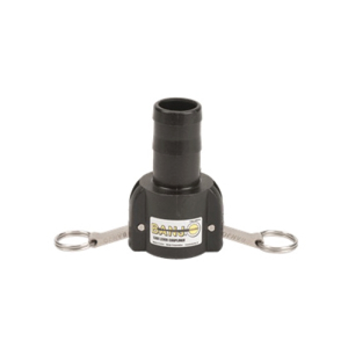 Banjo® Cam Lever Coupling, Connection Type 1: Type C, Gender 1: Female, Connection Size 1: 1 in, Connection Type 2: Hose Barb, Connection Size 2: 1-1/4 in, 300 psi, Material Construction: Polypropylene, Dimensions: 3-15/16 in L
