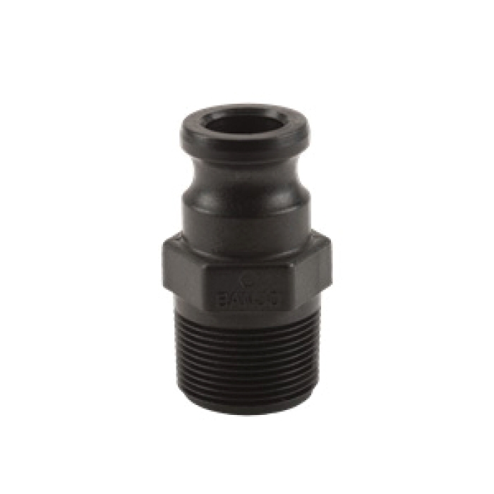 Banjo® Cam Lever Coupling, Connection Type 1: Type F, Gender 1: Male, Connection Size 1: 1 in, Connection Type 2: NPT, Gender 2: Male, Connection Size 2: 1-1/4 in, 300 psi, Material Construction: Glass Filled Polypropylene, Dimensions: 1-7/16 in Dia x 3-7/32 in L