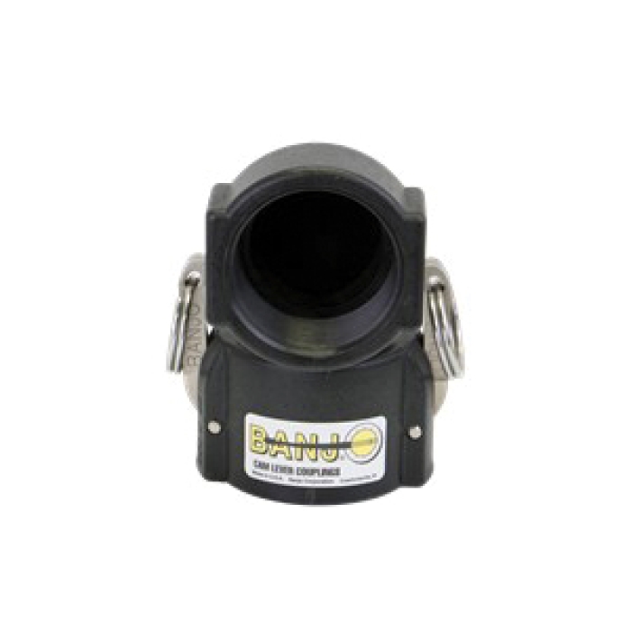 Banjo® Cam Lever 90 deg Coupling, Connection Type 1: Type D, Gender 1: Female, Connection Size 1: 2 in, Connection Type 2: NPT, Gender 2: Female, Connection Size 2: 2 in, 200 psi, Material Construction: Polypropylene, Dimensions: 3-1/8 in W