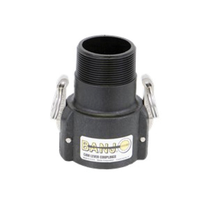 Banjo® Cam Lever Coupling, Connection Type 1: Type B, Gender 1: Female, Connection Size 1: 2 in, Connection Type 2: NPT, Gender 2: Male, Connection Size 2: 2 in, 200 psi, Material Construction: Polypropylene, Dimensions: 4-5/8 in L x 3-3/32 in W