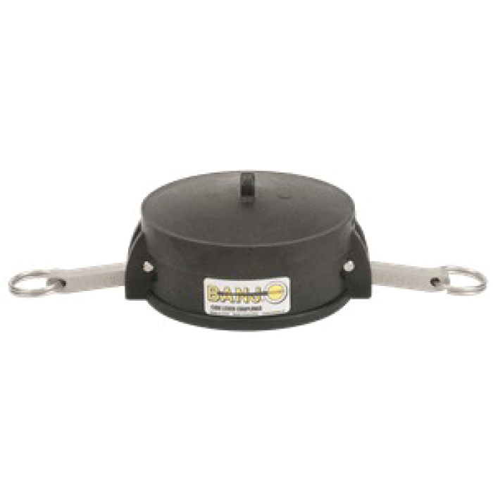 Banjo® Cam Lever Coupling Cap with 2 Arms, Connection Type 1: Type DC, Gender 1: Male, Connection Size 1: 4 in, 100 psi, Material Construction: Polypropylene, Dimensions: 10-15/16 in W