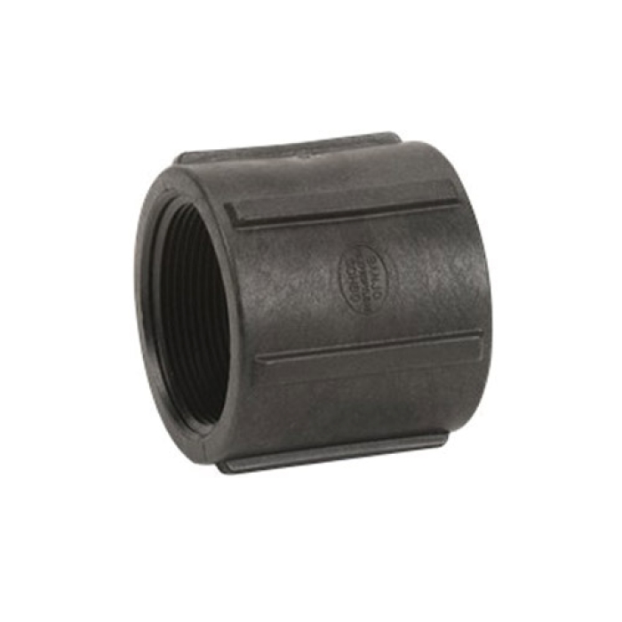 Banjo® Pipe Coupling, Connection Type 1: NPT, Gender 1: Female, Connection Size 1: 2 in, Connection Type 2: NPT, Gender 2: Female, Connection Size 2: 2 in, 300 psi, SCH 80, Material Construction: Glass Reinforced Polypropylene, Black, Dimensions: 2-3/4 in L, -20 to 150 deg F