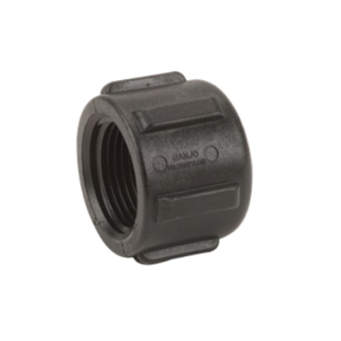 Banjo® Pipe Cap, Connection Type 1: NPT, Gender 1: Female, Connection Size 1: 1 in, Thread Size 1: 1-11-1/2, SCH 80, 300 psi, Material Construction: Glass Reinforced Polypropylene, Black, Dimensions: 1-7/16 in L, -20 to 150 deg F