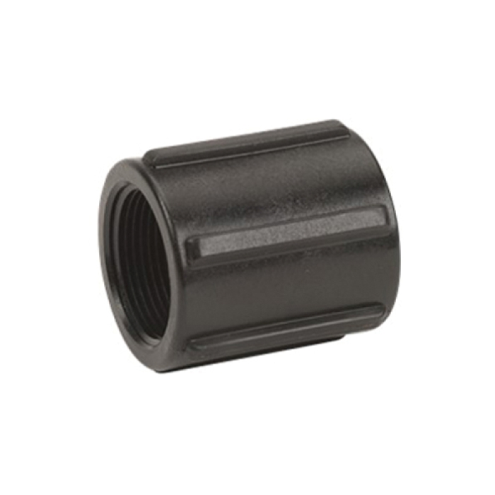 Banjo® Pipe Coupling, Connection Type 1: NPT, Gender 1: Female, Connection Size 1: 1-1/4 in, Connection Type 2: NPT, Gender 2: Female, Connection Size 2: 1-1/4 in, 300 psi, SCH 80, Material Construction: Glass Reinforced Polypropylene, Black, Dimensions: 2-1/2 in L, -20 to 150 deg F