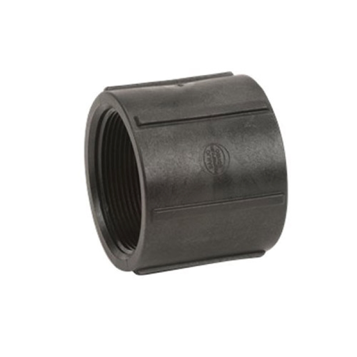 Banjo® Pipe Coupling, Connection Type 1: NPT, Gender 1: Female, Connection Size 1: 3 in, Connection Type 2: NPT, Gender 2: Female, Connection Size 2: 3 in, 225 psi, SCH 80, Material Construction: Glass Reinforced Polypropylene, Black, Dimensions: 3-19/32 in L, -20 to 150 deg F