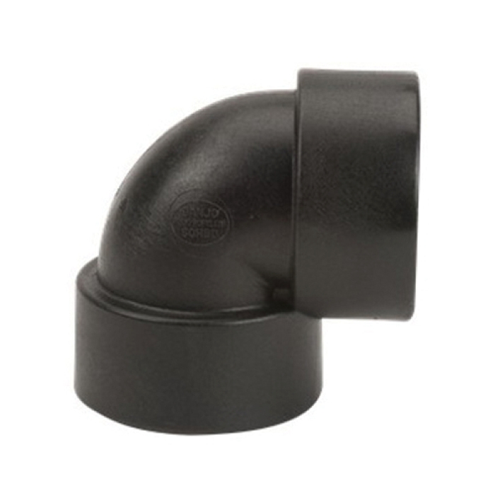 Banjo® 90 deg Elbow, Connection Type 1: NPT, Gender 1: Female, Connection Size 1: 2 in, Connection Type 2: NPT, Gender 2: Female, Connection Size 2: 2 in, 300 psi, SCH 80, Material Construction: Glass Reinforced Polypropylene, Black, Dimensions: 4 in H, -20 to 150 deg F