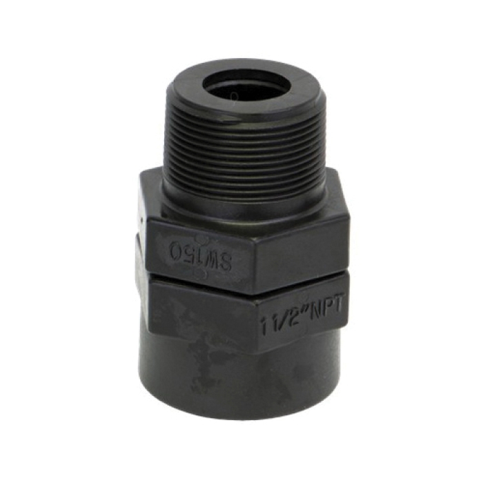 Banjo® Pipe Swivel Coupling, Connection Type 1: NPT, Gender 1: Male, Connection Size 1: 1-1/2 in, Connection Type 2: NPT, Gender 2: Female, Connection Size 2: 1-1/2 in, Hex Size: 2-13/32 in, 150 psi at 70 deg F, SCH 80, Material Construction: Glass Reinforced Polypropylene, Dimensions: 3-3/4 in L