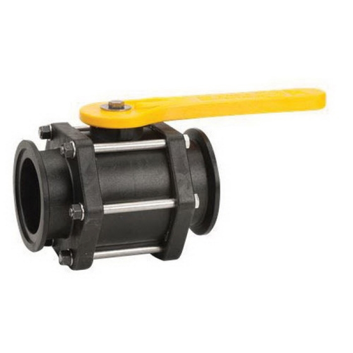 Banjo® Standard-Port Manifold Ball Valve, Nominal Size: 3 in, Connection Type: Flange, Actuator Type: Lever, Material Construction: Polypropylene, PTFE Seat Trim, 150 psi