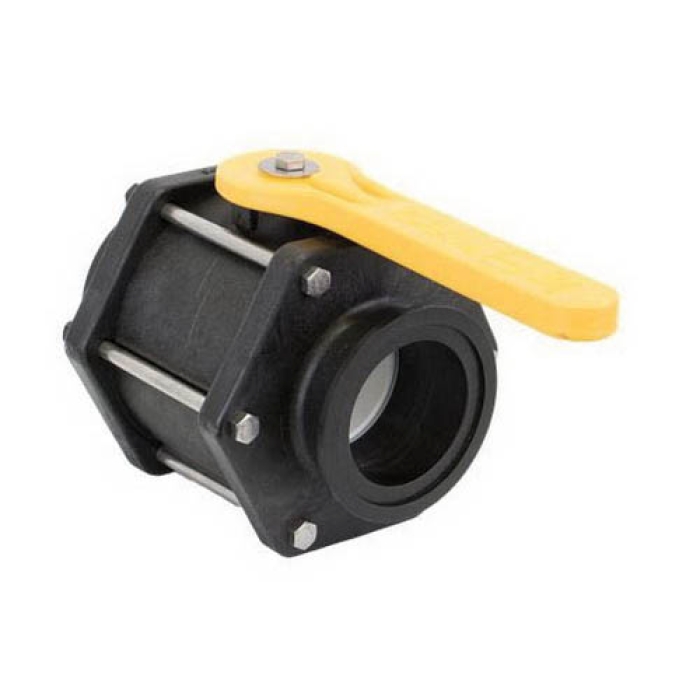 Banjo® Full-Port Manifold Ball Valve, Nominal Size: 3 in, Connection Type: Flange, Actuator Type: Lever, Material Construction: Polypropylene, 7-11/32 in Height