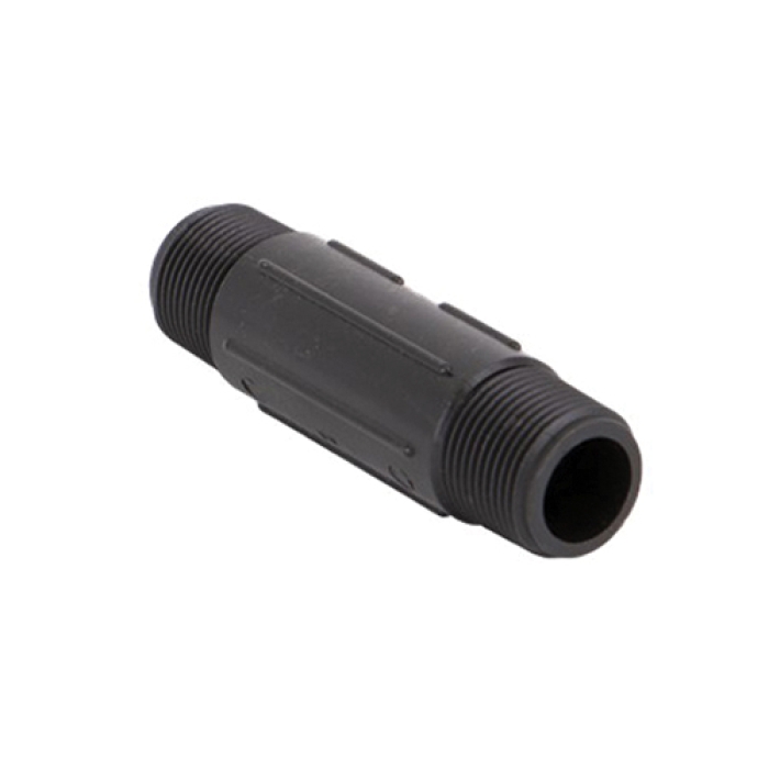 Banjo® Standard Pipe Nipple, Connection Type 1: NPT, Gender 1: Male, Connection Size 1: 3/4 in, Thread Size 1: 3/4-14, Connection Type 2: NPT, Gender 2: Male, Connection Size 2: 3/4 in, Thread Size 2: 3/4-14, SCH 80, 300 psi, Material Construction: Glass Reinforced Polypropylene, Black, 11/16 in ID x 1-1/8 in OD Diameter, 4 in Length, -20 to 150 deg F