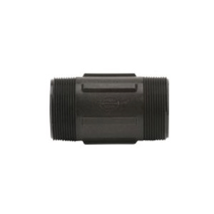 Banjo® Nipple, Connection Type 1: NPT, Gender 1: Male, Connection Size 1: 2 in, Connection Type 2: NPT, Gender 2: Male, Connection Size 2: 2 in, SCH 80, 300 psi, Material Construction: Glass Reinforced Polypropylene, Black, 1-7/8 in Diameter, 4 in Length, -20 to 150 deg F