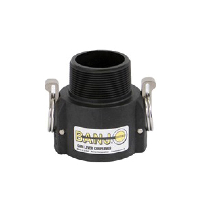 Banjo® Cam Lever Coupling, Connection Type 1: Type B, Gender 1: Female, Connection Size 1: 2 in, Connection Type 2: NPT, Gender 2: Male, Connection Size 2: 2 in, 225 psi, Material Construction: Polypropylene, Dimensions: 3-9/16 in L x 6-19/32 in W