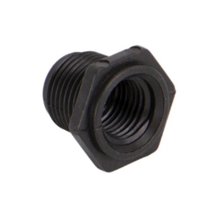 Banjo® Bushing, Connection Type 1: NPT, Gender 1: Male, Connection Size 1: 3/8 in, Thread Size 1: 3/8-18, Connection Type 2: NPT, Gender 2: Female, Connection Size 2: 1/4 in, Thread Size 2: 1/4-18, SCH 80, Hex Size: 7/8 in, 300 psi, Material Construction: Glass Reinforced Polypropylene, Black, Dimensions: 3/4 in L, -20 to 150 deg F